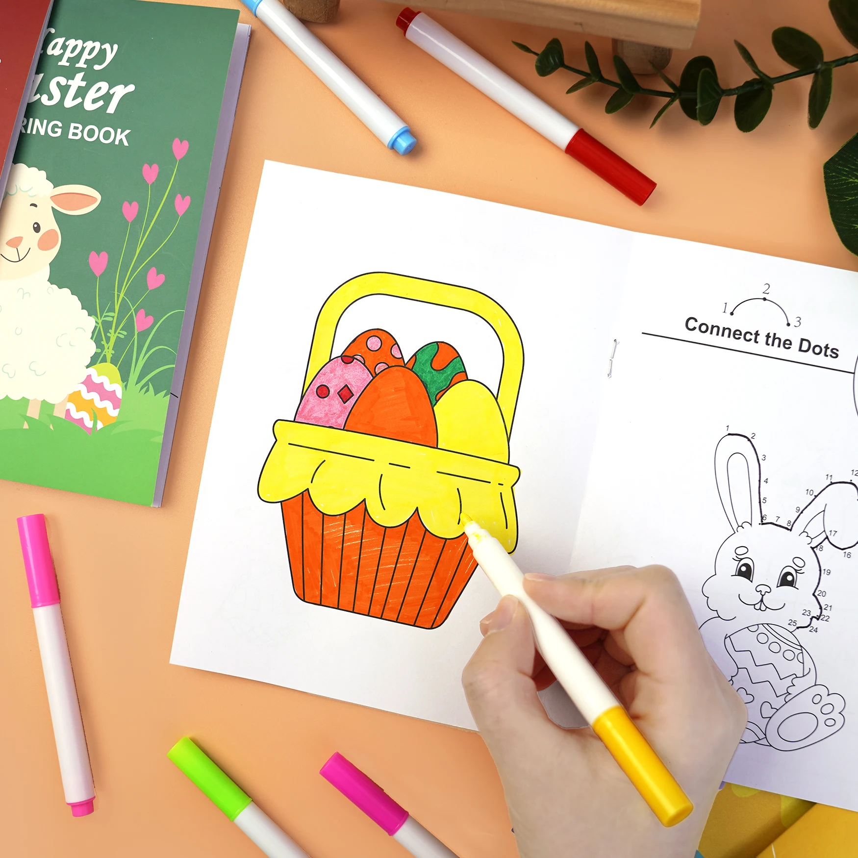 Each book is filled with Easter-themed content, combining a three-in-one quiz, coloring activities, and engaging games for endless fun! Made from thick, high-quality, and eco-friendly paper, it is compatible with markers, watercolor pens, oil pastels, and more without bleeding through the pages. This allows children to unleash their creativity and fully enjoy their coloring experience.